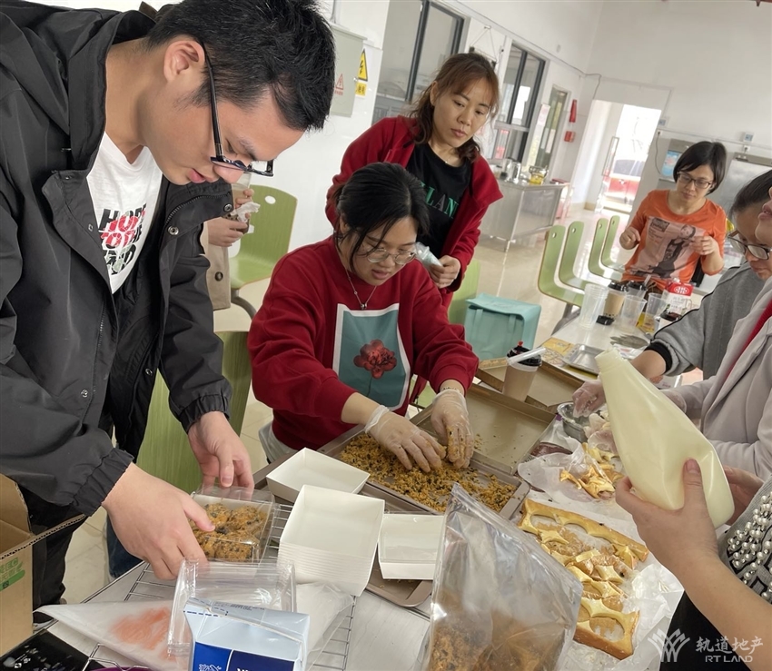 活動(dòng)現(xiàn)場(chǎng),由愛好烘焙的同事指導(dǎo)大家制作蛋糕、蛋撻、肉松小貝、雪媚娘、珍珠奶茶等美食,有“斤斤計(jì)較”分配食材的、有“認(rèn)認(rèn)真真”研究烤制時(shí)間的、有“切切察察”切分水果的……一番忙碌之后,一個(gè)個(gè)美觀、美味的蛋糕、蛋撻等陸續(xù)呈現(xiàn)在大家的面前。整個(gè)活動(dòng)現(xiàn)場(chǎng)彌漫著濃郁的香甜氣味,大家品嘗著自己的勞動(dòng)成果,洋溢著陣陣的歡聲笑語,充滿著快樂和幸福的味道。